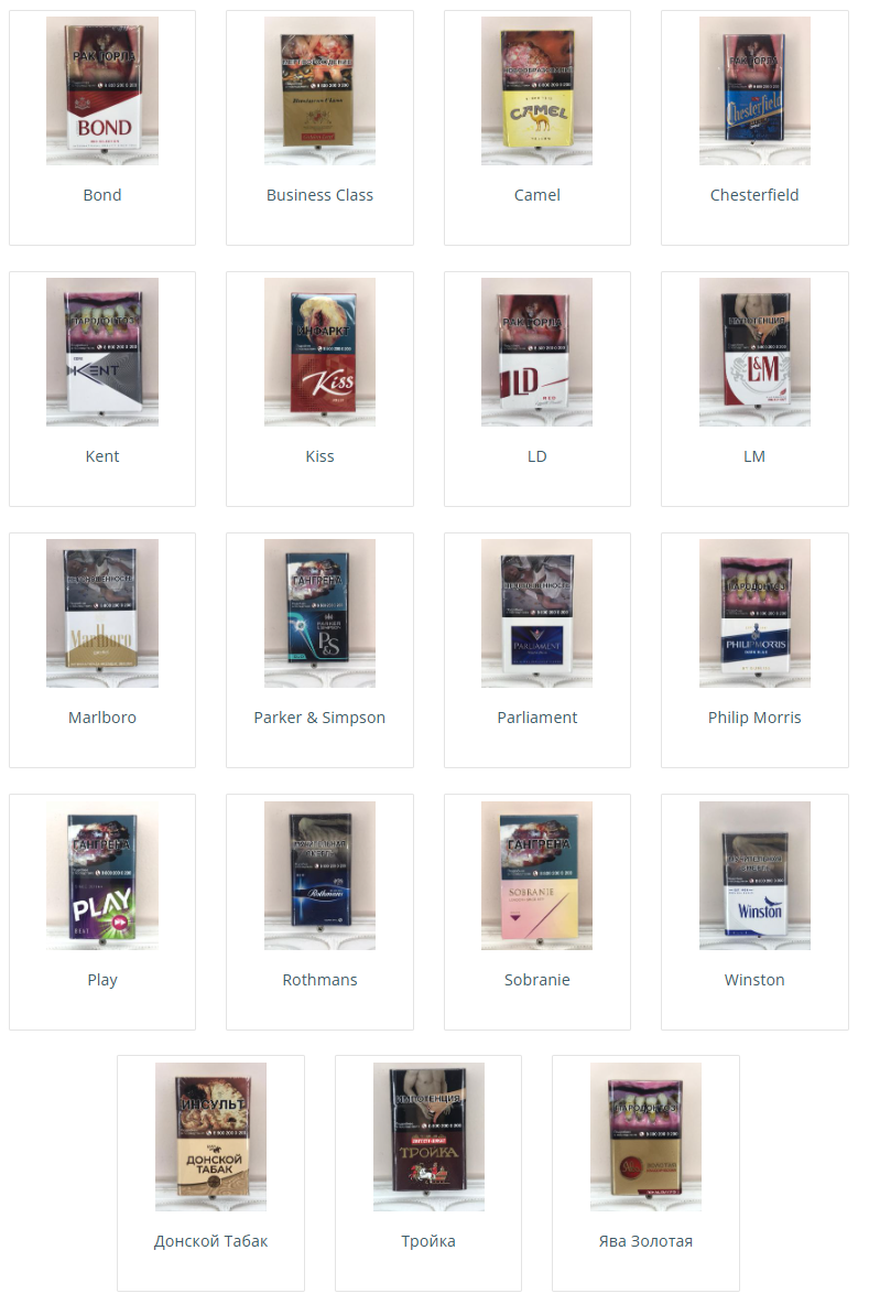 Бренды Bond, LD, Ява, ВТ, Camel, Winston, Parliament, Marlboro, Chesterfield, Kent и другие стабильно занимают лидирующие позиции на рынке.