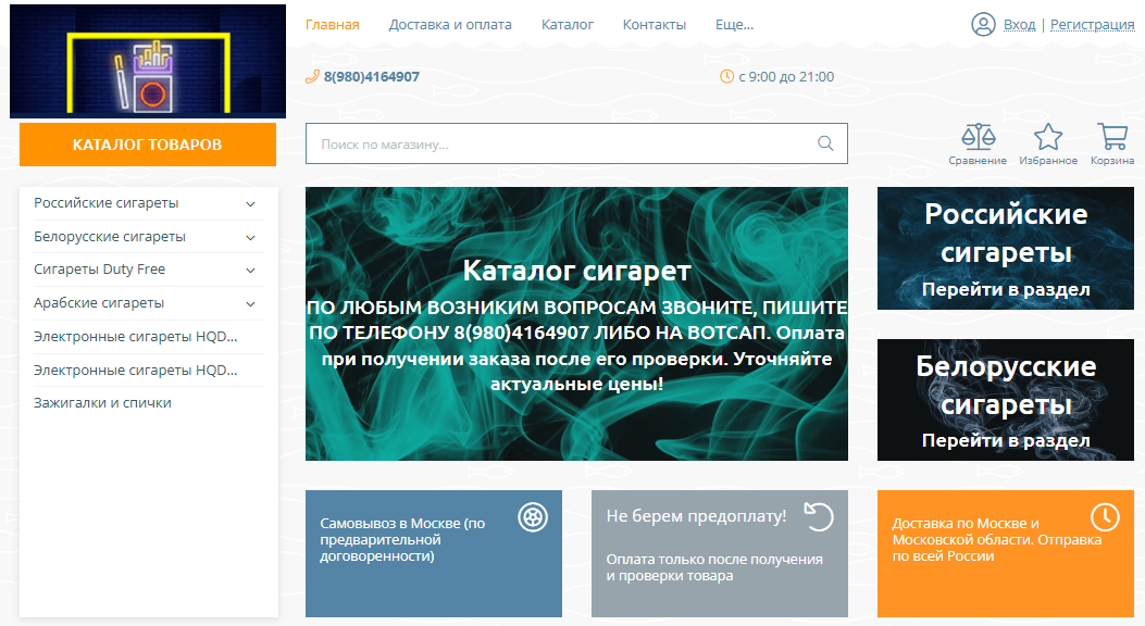 В каталоге представлены бренды всех категорий — от классических российских до ароматизированных арабских и Duty Free.